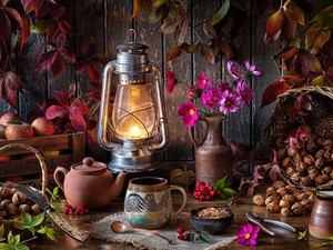plate, leaves, Scoop, coffee, grains, cup, White, cappuccino