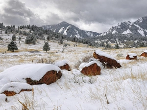 clouds, Mountains, Meadow