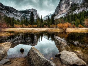 clouds, lake, Mountains
