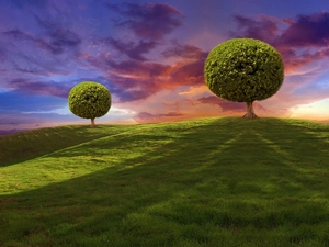 country, Way, trees, field
