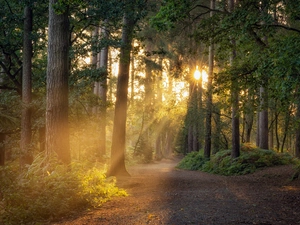 Flowers, Field, papavers, Red, evening, Great Sunsets, viewes, clouds, trees