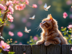 cat, Flowers, Pink, fluffy