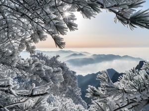 Snowy, River, viewes, Fog, trees, winter