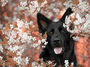 Black, forest, trees, German Shepherd