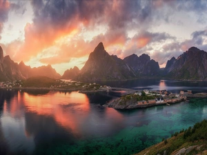 viewes, River, clouds, Great Sunsets, grass, trees