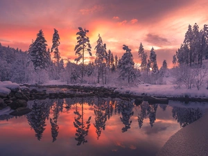 trees, viewes, Meadow, Great Sunsets, papavers