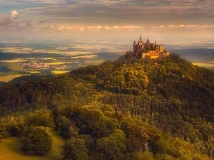 reflection, Cerkiew, viewes, Great Sunsets, trees, lake
