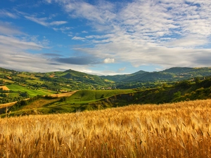 Sunrise, Flowers, The Hills, Houses, Meadow, lilies