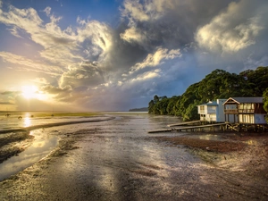 Pink, Flowers, sea, lilies