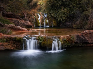 reflection, Mirror, Mountains, River, autumn