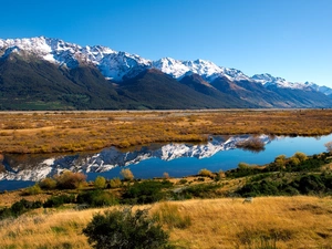 Mountains, waterfall