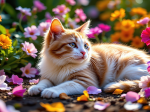 Pink, cat, Flowers