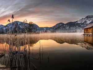 plantation, Tulips, clouds, Pink