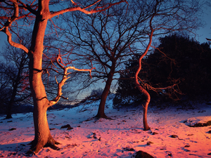 Snowy, snow, viewes, forest, winter, trees, rays of the Sun