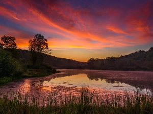 State of California, The United States, Yosemite National Park, Mountains, viewes, Mirror Lake, rocks, trees, Half Dome Peak