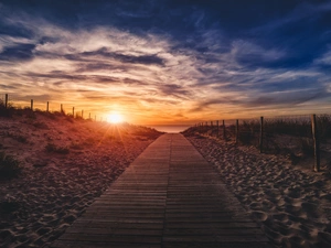 west, sea, Ship, sun