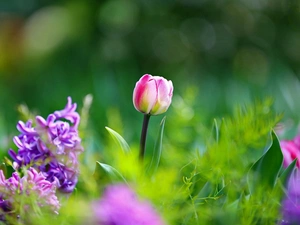 grass, Mountains, viewes, Sunrise, trees, lake