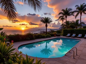 Palms, Flowers, Mountains, Plants, Stones, Pool, Houses, Sunshade