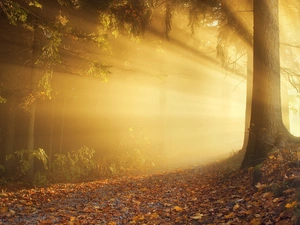 trees, viewes, snow, traces, house