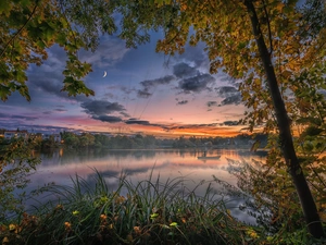 snow, winter, trees, viewes, Great Sunsets, River