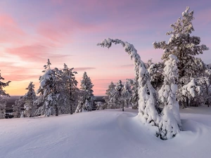 trees, Mountains, Fog, winter, viewes, River