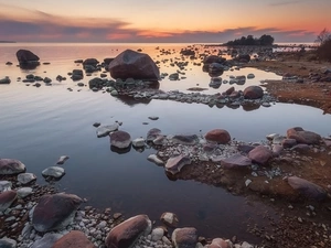 Yellow, Flowers, Meadow, blue, Sunrise, River, The Hills, lupine